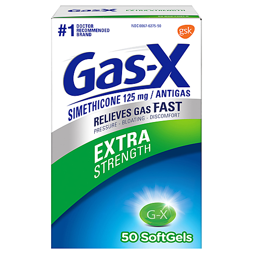 Gas-X Extra Strength Gas Relief Softgels with Simethicone 125 mg deliver fast relief of gas pressure, bloating and discomfort. These simethicone 125 mg softgels go to work in minutes, rescuing you from embarrassing situations and helping you get back to feeling like yourself. Gas-X uses 125 mg simethicone to break up gas bubbles in your stomach and intestines. Once this trapped gas is broken down, your body can deal with the gas properly. These Gas-X Antigas Softgels are portable and easy to take. Adults and children 12 years of age and older may take one or two antigas pills as needed, not to exceed four gas relief pills in 24 hours unless directed by a doctor. Trust Gas-X, the #1 doctor recommended OTC anti-gas product.*